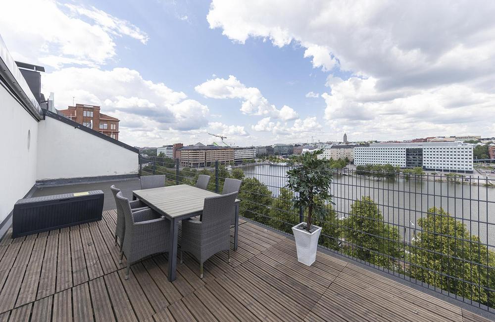 Tilat: Saunatiloissa pieni keittiönurkkaus, jossa kahvinkeitin, vedenkeitin, mikro, jääkaappi, uuni ja astianpesukone. Omat tarvikkeet tuotava paikalle. Keittiön lisäksi on oleskelutila sisätiloissa sekä iso kattoterassi.