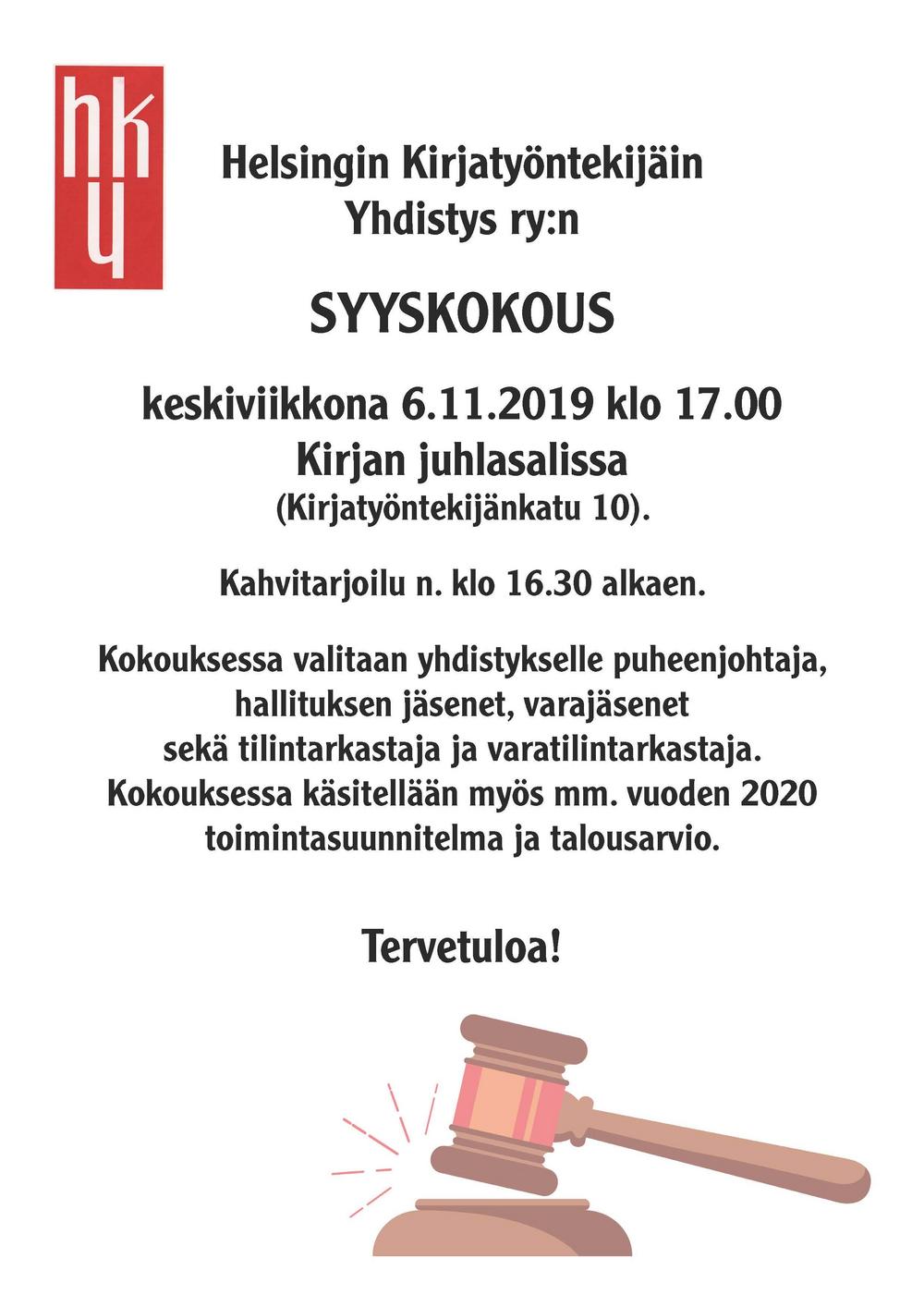 Kokouksessa käsitellään myös mm. vuoden 2020 toimintasuunnitelma ja talousarvio.