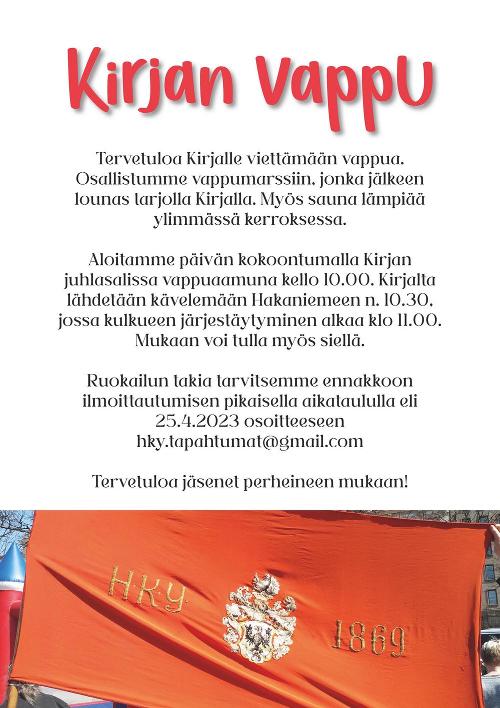 hky.tapahtumat@gmail.com. Muista ilmoittaa myös allergiat ja erikoisruokavaliot.