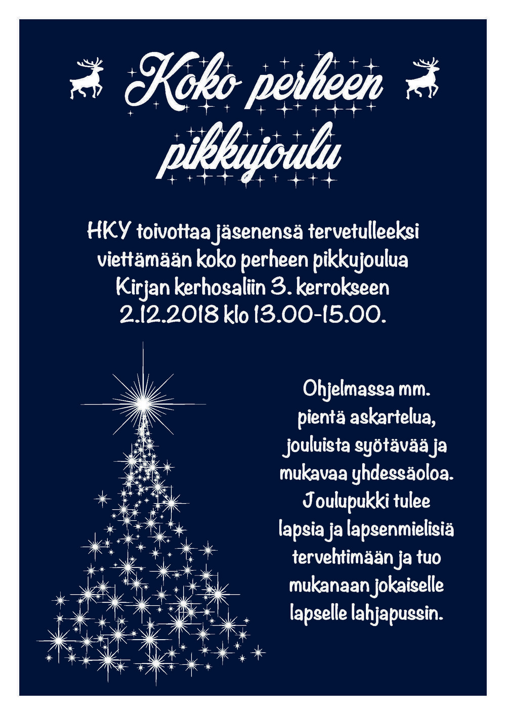 HKY toivottaa jäsenensä tervetulleeksi viettämään koko perheen pikkujoulua