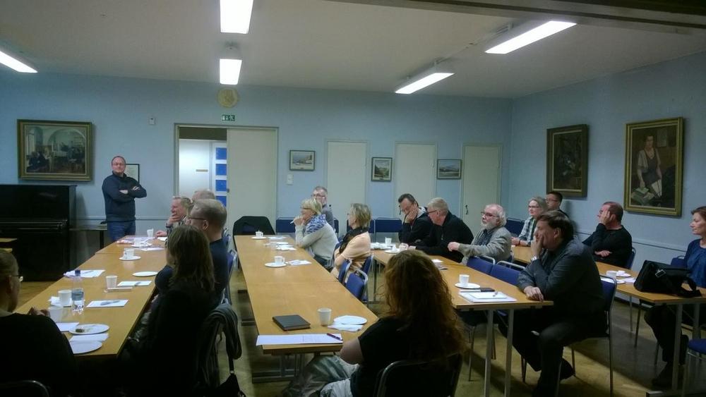 Aamu aloitettiin aamukahvilla ja sämpylöillä. Osallistujia oli parikymmentä. Mukana oli työttömäksi jääneitä jäseniä sekä työssä käyviä.